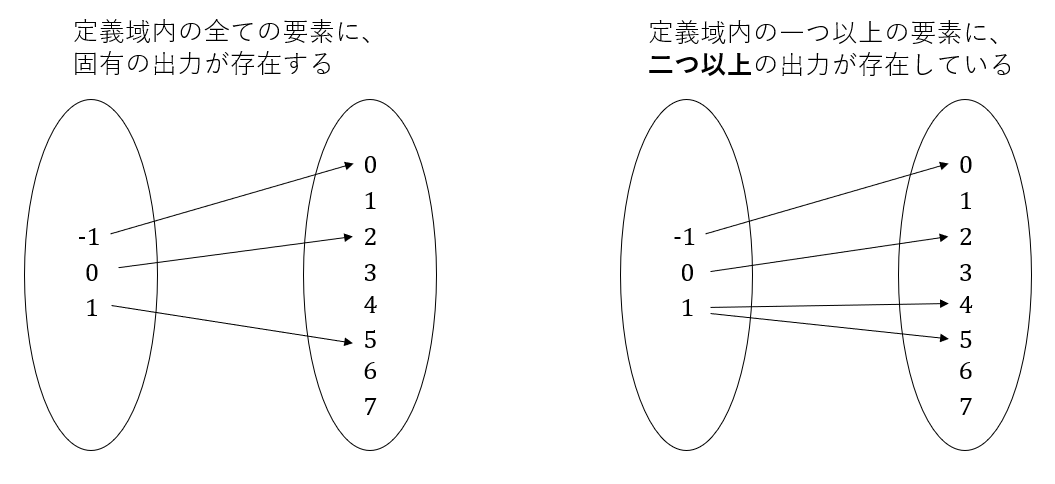 もう一つが、一つの入力に対して、一つだけの出力値しか存在しないことだ。